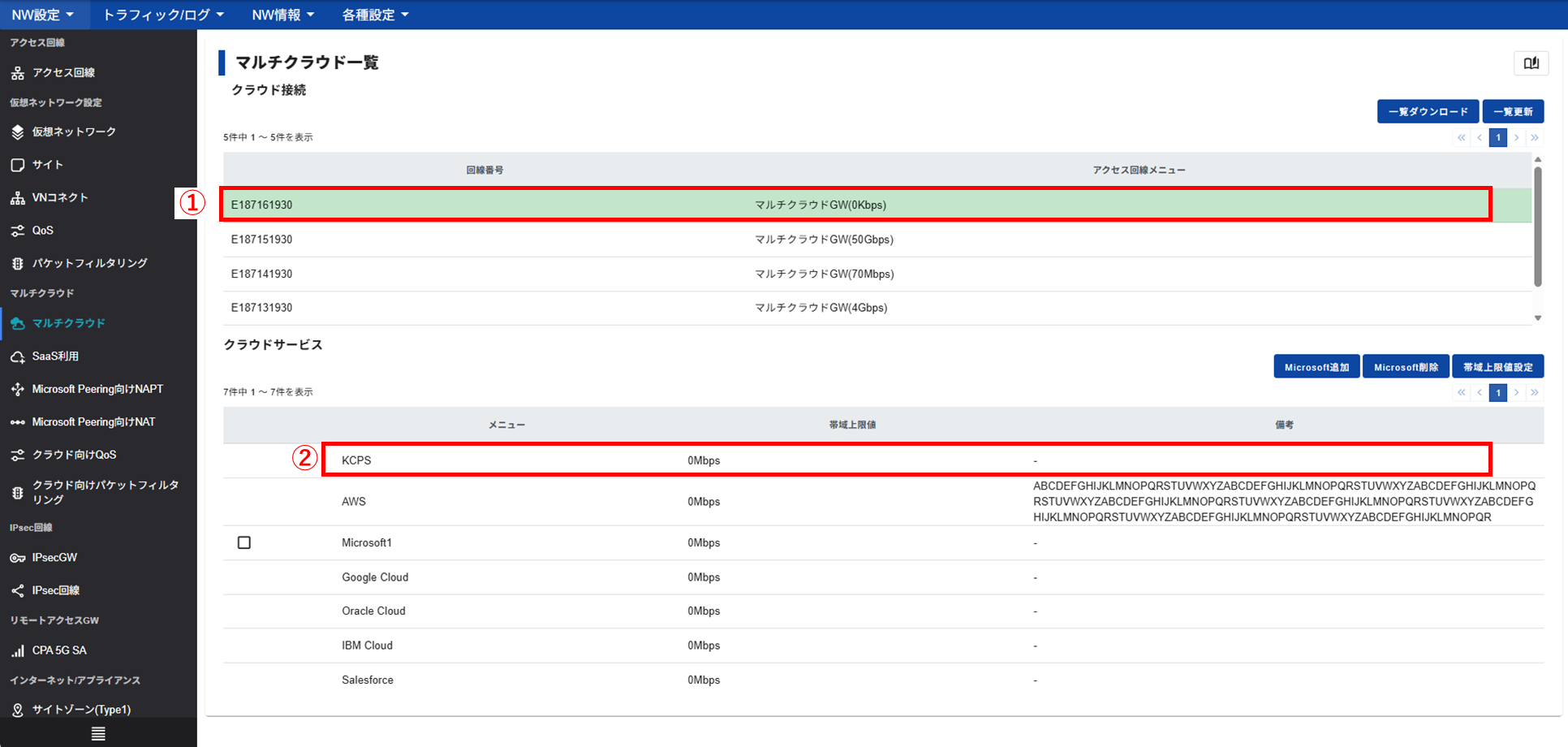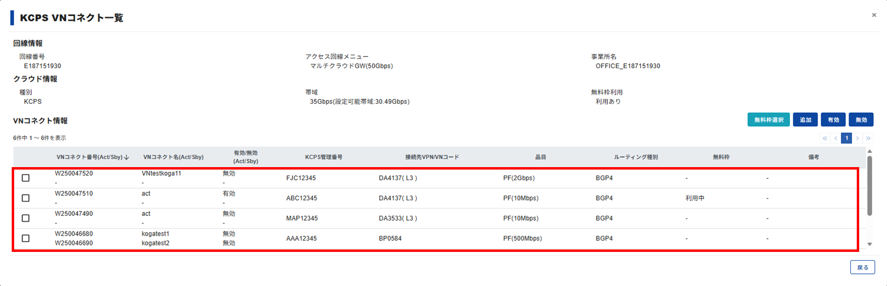 画面遷移:NW設定 > マルチクラウド一覧 > KCPS VNコネクト一覧 > KCPS向けVNコネクト情報