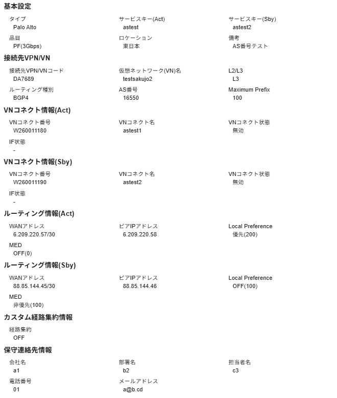 画面下部に対象の「SASEゲートウェイPalo Alto契約詳細」が表示されます。