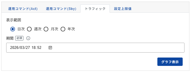 トラフィックタブを選択すると設定項目と「グラフを表示」ボタンが出現します。