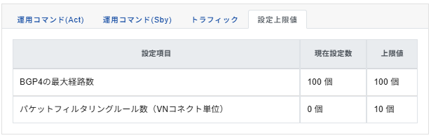 設定上限値タブを選択することにより、設定上限値情報が閲覧可能です。