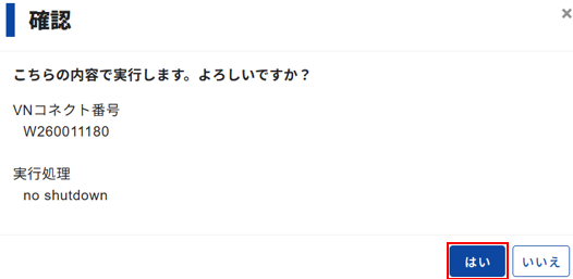 IF状態変更確認画面にて実行処理を確認後、間違いなければ「はい」を押下し、ポップアップで「OK」を押下することで変更を確定します。