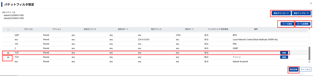 2.パケットフィルタ設定(変更・削除)